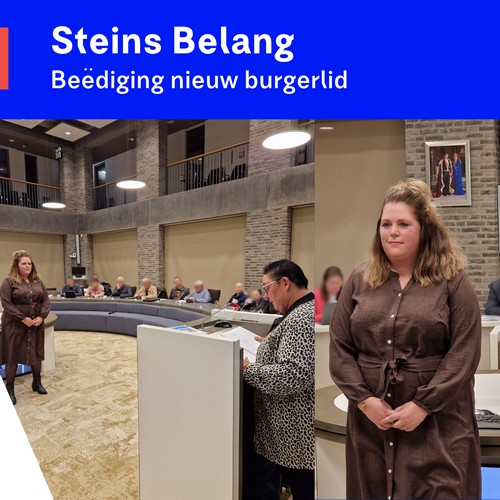 Spannend moment! Gisteren is Nadine Janssen-Dormans beëdigd als burgerlid van Steins Belang. Met het uitspreken van de belofte voor Burgemeester Leurs-Mordang en alle aanwezigen tijdens de beeldvormende bijeenkomst, geeft zij een commitment af om zich samen met de andere enthousiaste medepartijleden sterk te maken voor onze gemeenschap.