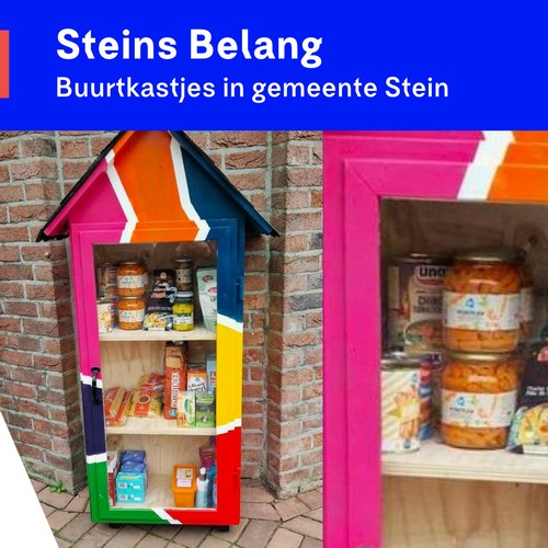 In de gemeente Stein staan op diverse plekken buurtkastjes, waar mensen die moeilijk kunnen rondkomen gratis voedsel uit kunnen pakken.