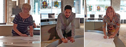 Gina, Noud en Mirjam tekenen het coalitie akkoord van de gemeente Stein 2018-2022. Lees meer in het artiekel 'Steins Belang gaat door'.